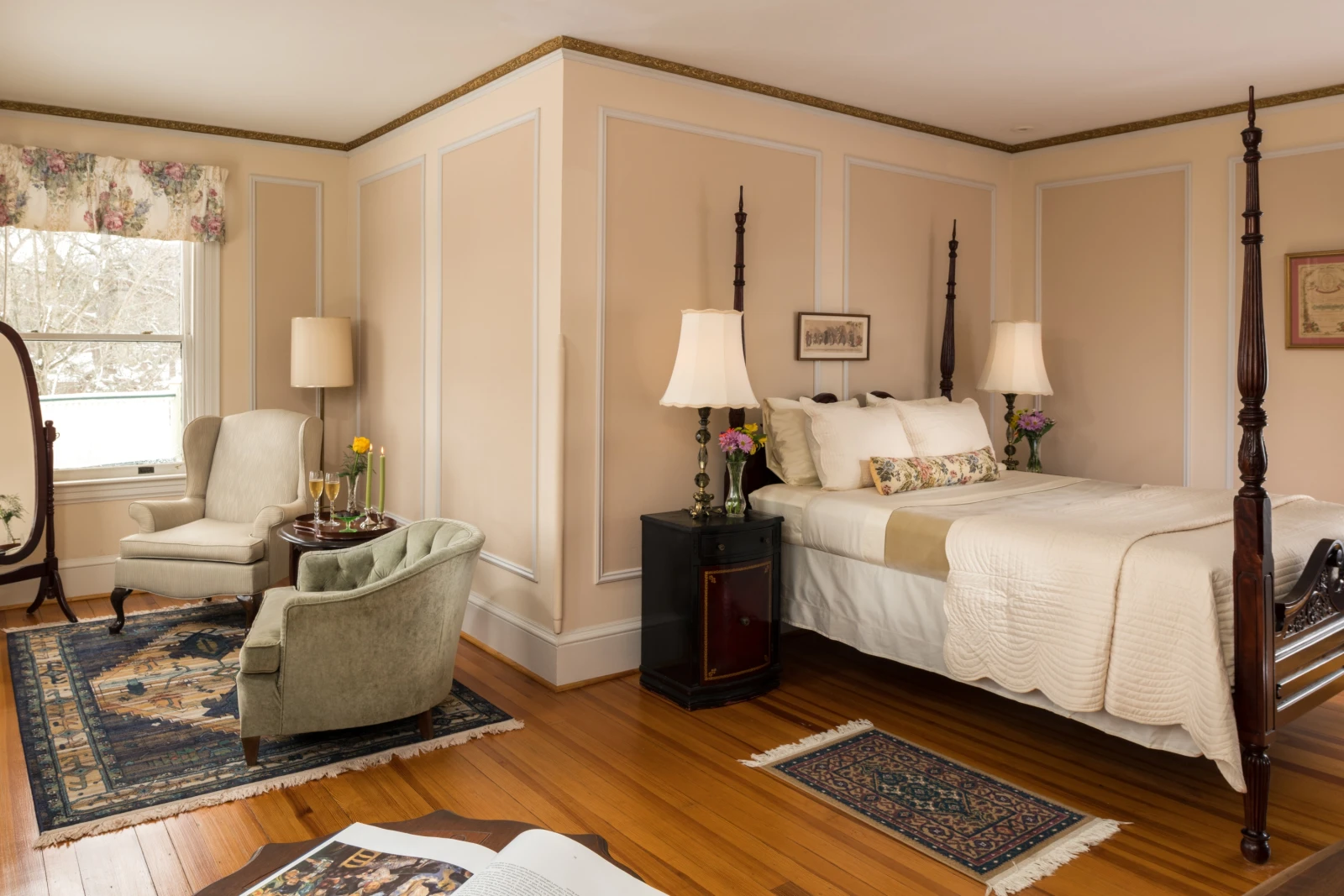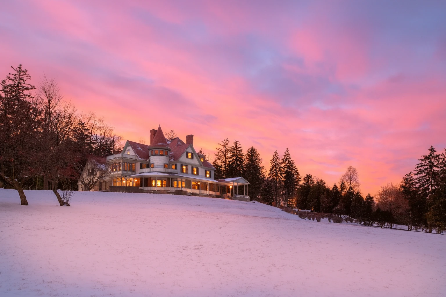 Idlwilde Inn is Victorian mansion and carriage house built in 1892. This Watkins Glen bed and breakfast offers the perfect blend of comfort and charm, with modern touches like complimentary breakfast, free high-speed WiFi, and convenient EV chargers. Guests can unwind on the spacious wraparound porch while taking in year round beautiful views of Seneca Lake, or find a quiet spot in the gazebo or fountain garden. Each season brings something special — whether it’s hiking nearby trails or simply sitting by the fire after playing in the snow. With exquisite craftsmanship and a great location, Idlwilde Inn makes it easy to relax and enjoy your stay.