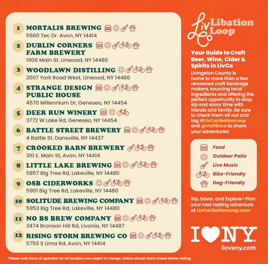 Livingston County is home to more than a few renowned craft beverage makers, sourcing local ingredients and offering the perfect opportunity to stop, sip and savor time with friends and family. Be sure to check them all out and tag #LivCoLibationLoop and @visitlivco to share your adventures!